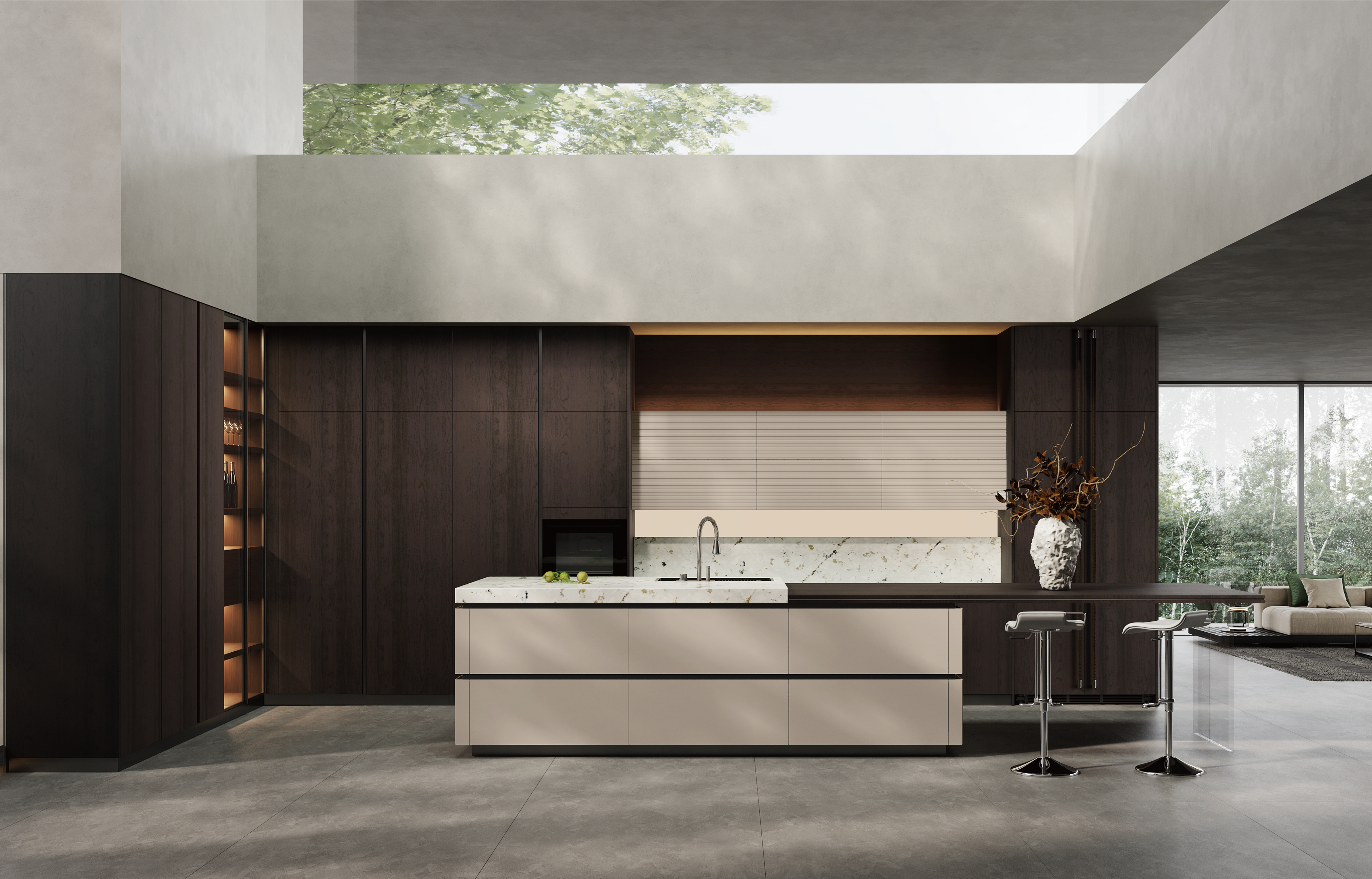 通过Z6尊龙厨柜量体裁柜,定制出适合主厨下厨的烹饪区和洗涤区的舒适高度。